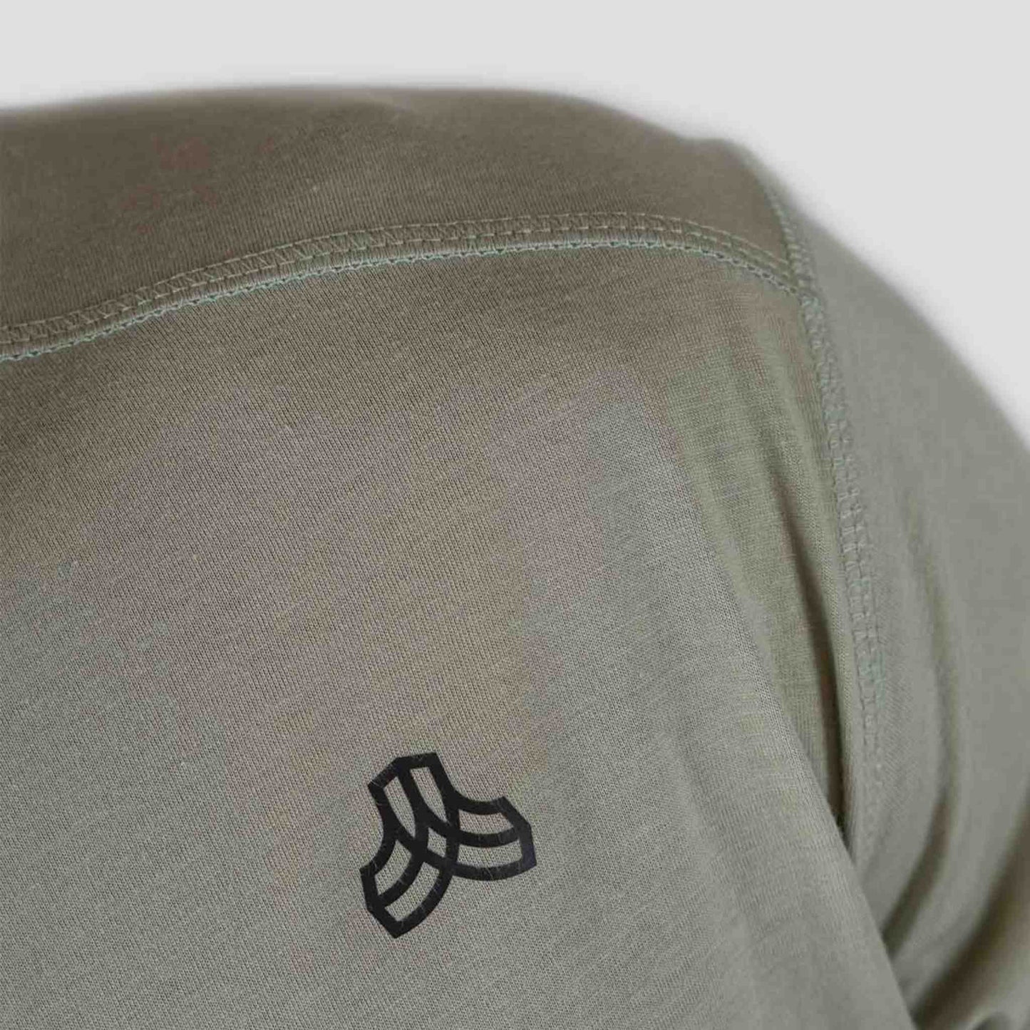This product is also the first introduction to our new color; sage green. A subtle shade of green that reflects the color of sage in an early autumn setting. To complete the t-shirt, we chose minimalist black prints of our logo on the chest, offset text on the back and PF20.Wood subtext.