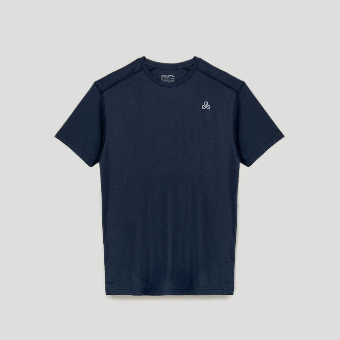 Voor het ontwerp hebben we gekozen voor onze diepzeeblauwe kleur als basis, met lichtgrijze designelementen. Gecombineerd met een normale pasvorm en getailleerde mouwen ontstaat zo een klassiek T-shirt, gemaakt van de modernste materialen van natuurlijke oorsprong.