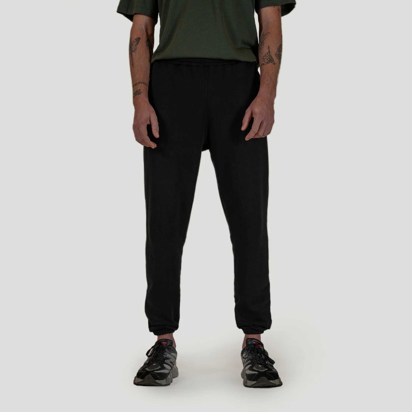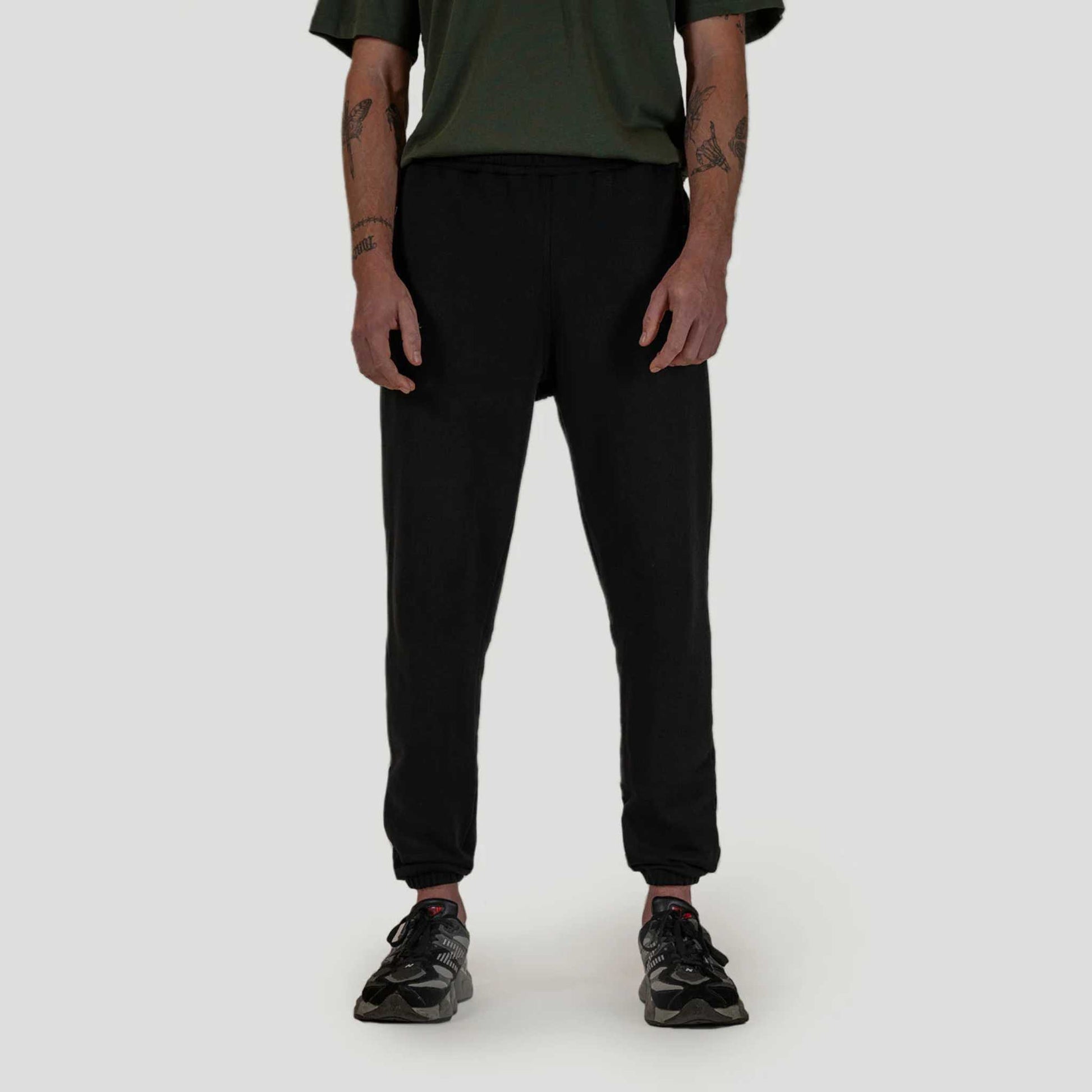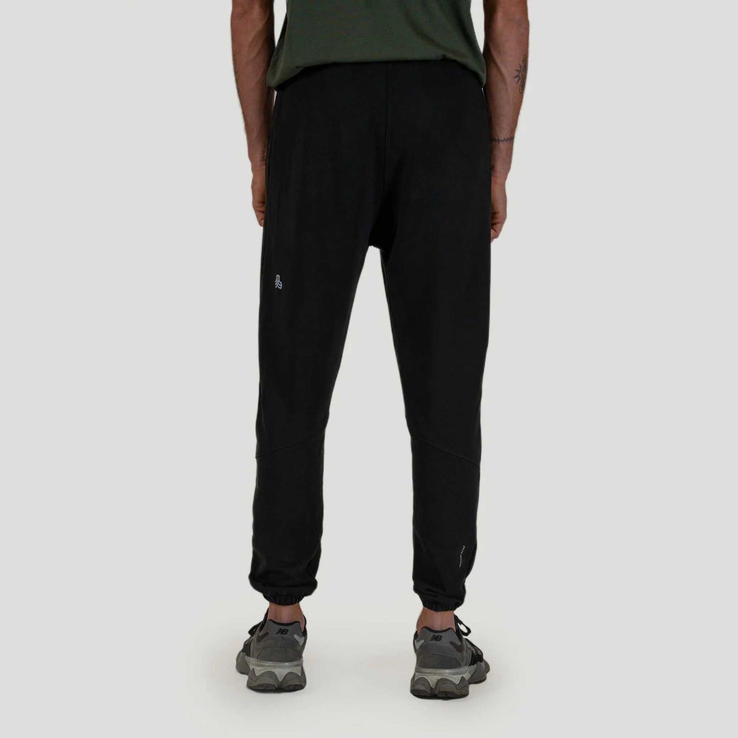 The jogger has a regular fit, and natural rubber elastic bands on both the cuffs and waistband, creating natural stretch and support where needed. As for the design, we’ve chosen a classic black shade with our signature light grey prints.